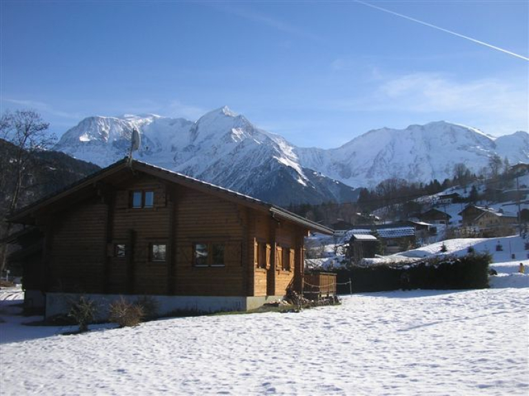 face au Mont Blanc, le chalet de type norvégien tout en bois est à 1000 m d'altitude, avec une vue magnifique sur la vallée et les montagnes.Très ensoleillé, dans un environnement calme, il est situé à 3 kms de Saint Gervais et 4 kms de Saint Nicolas de Véroce, 2km des pistes et à 5mn à pieds d'un arrêt de navette. A la croisée également de Mégève, Combloux et les Contamines Montjoie. Le chalet est tout en bois, sa superficie est de 100 m2. On peut y vivre à l'aise à 8/9 personnes. Il y a 3 chambres, une mezzanine avec canapé lit, un séjour spacieux, un salon , une cuisine équipée, 1 salle de bain,wc independant, une terrasse. 1er niveau: un séjour, salle à manger. une cuisine équipée (4 plaques de cuisson, lave-vaisselle, four, frigo). une salle de bains (avec baignoire) et un WC séparé, une petite chambre avec lits superposés, une chambre avec un lit double de 140.2ème niveau : une mezzanine avec un canapé lit 2 places, une chambre avec un lit double de 160.Accès internet. Bonnes vacances