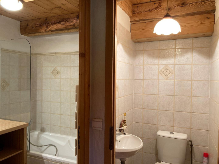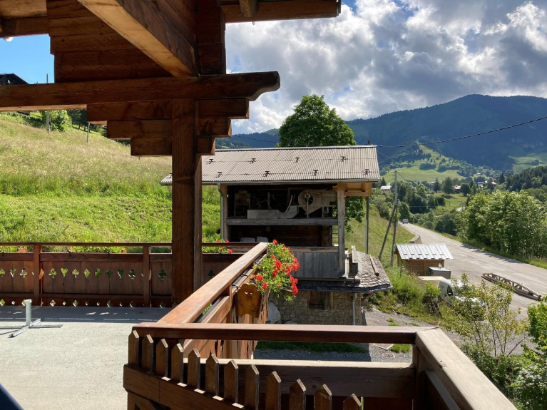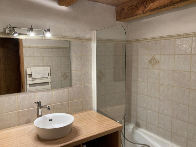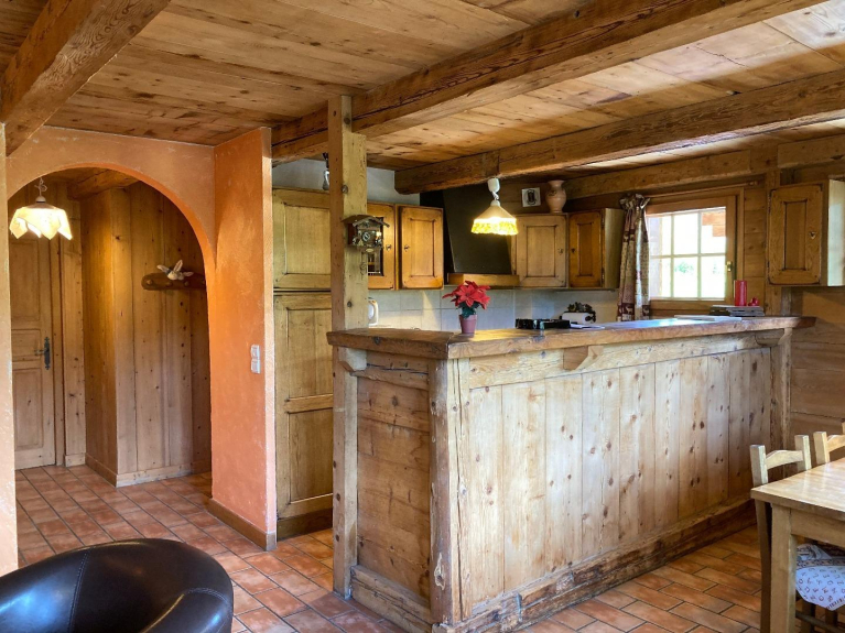Dans une ferme rénovée, décoration intérieur en vieux bois, pistes <1km, arrêt navette. grande terrasse d'environ 40m²