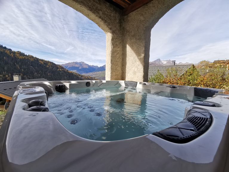Séjour avec cheminée, salle à manger, salle de billard. Grand balcon avec vue dégagée. Salon TV HIFI internet WIFI. Sauna, SPA, équipement tout confort. 4 places de parking privatives.
