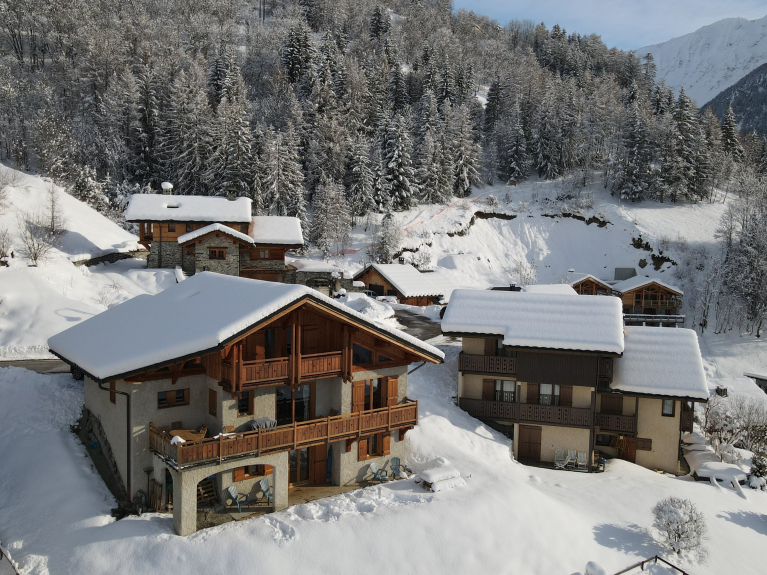 Chalet individuel récent décoré de matériaux traditionnels dans lotissement très calme, à proximité du village de Peisey, et à 350 m de la remontée mécanique permettant d'accéder au domaine des Arcs Peisey Vallandry ou de La Plagne (Paradiski). Rassemblement ESF, garderie, location de ski à proximité de cette remontée. Le chalet se trouve également à 5 km de la porte du Parc National de la Vanoise, pour les amateurs d'activités nordiques ou de pleine nature.