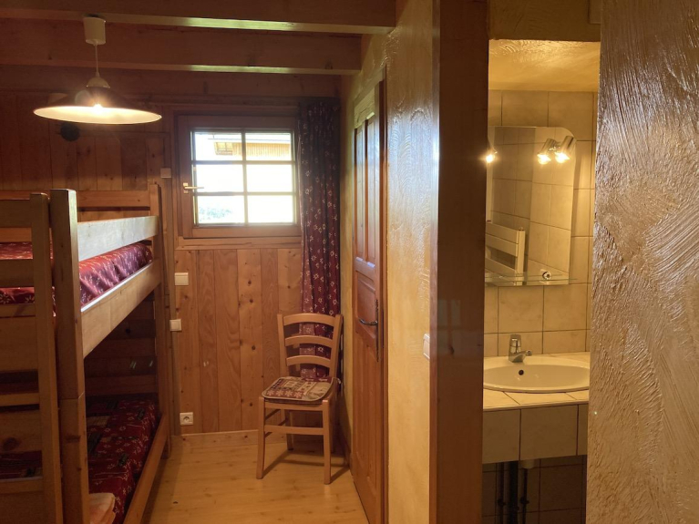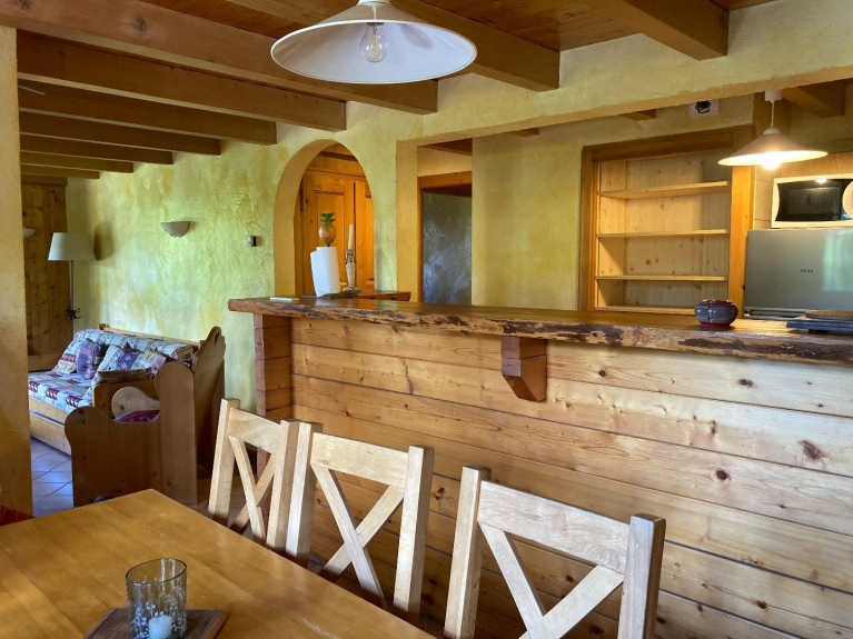 dans une acienne ferme rénovée, très bel appartement gite de France. Pistes à moins d'1km, Arrêt navette au pied du chalet en hiver.