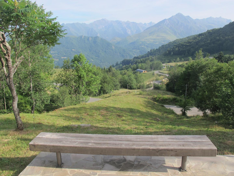 Panorama superbe sur la chaine des Pyrénées.Idéale pour les balades, été et hiver, ski de fond ,VTT ,marche; parapente. Tous commerces à 7km.