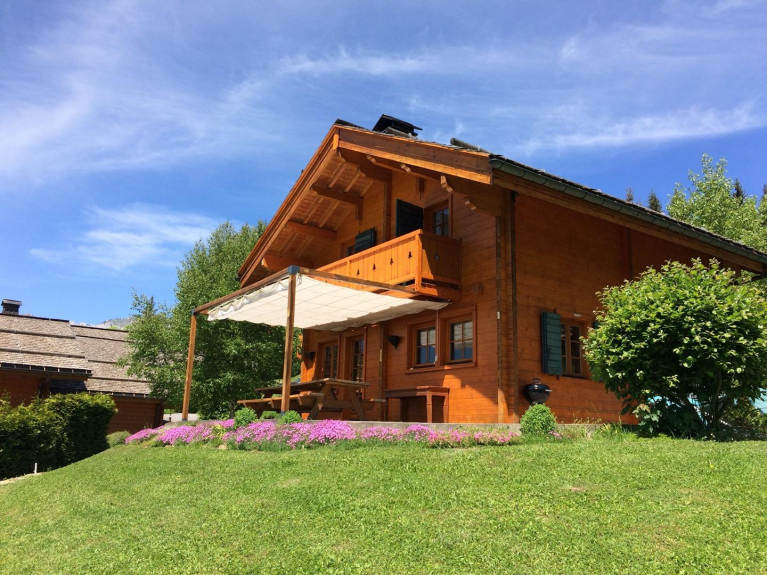 Orienté plein sud dans une nature calme et sauvage avec la forêt à 50m, ce luxueux chalet construit en madriers allie charme et dépaysement.