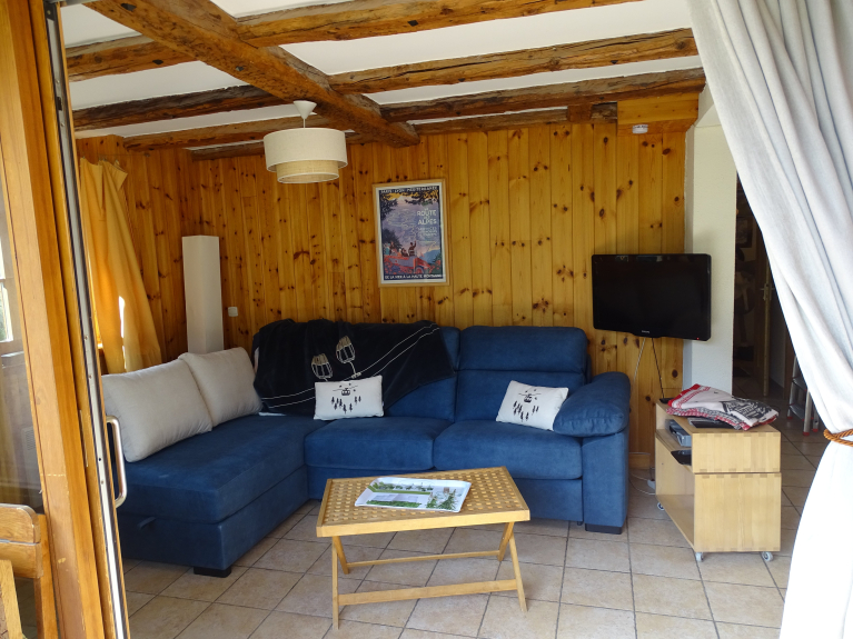 D’un séjour équipé – d’un canapé d’angle 6 personnes dont une partie est convertible en un lit de qualité pour 2 personnes, – d’une télévision écran plat HD équipée du satellite, – d’une chaîne HI-FI MP3.
