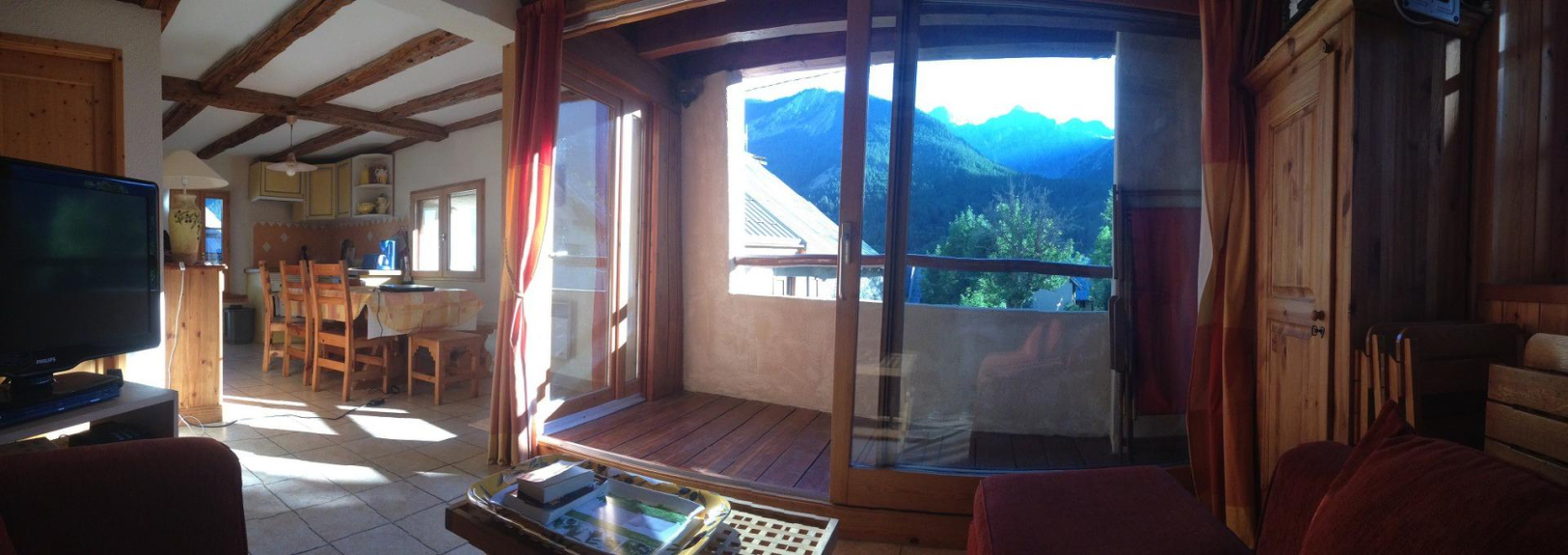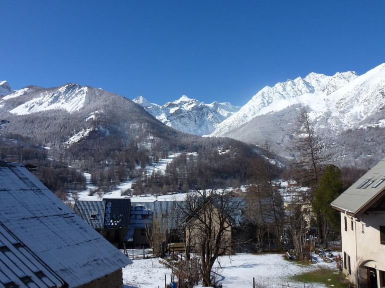 Pas moins de 3 grandes fenêtres et une grande loggia vous offrent la vue magnifique sur le domaine skiable de Serre-Chevalier, les pistes de ski du Monêtier-Les-Bains et le Parc National des Écrins avec le fabuleux glacier.