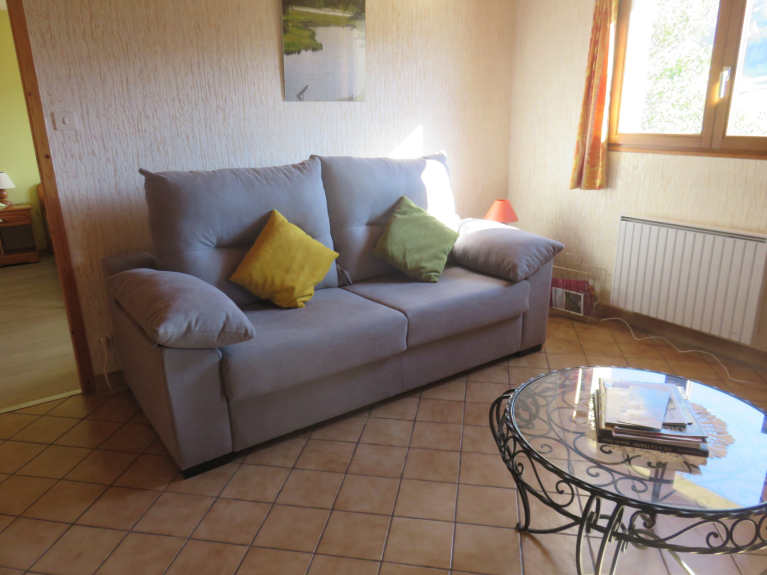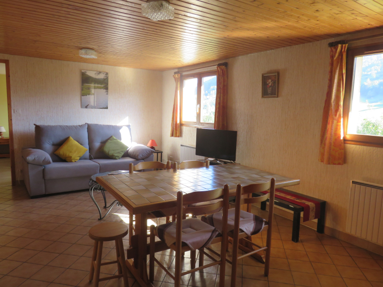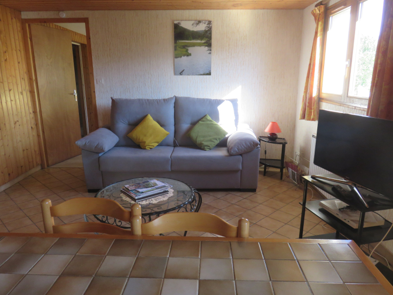 - salle à manger salon avec télévision, lecteur DVD, canapé-lit clic clac, table de salon