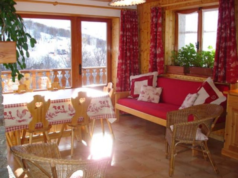 Equipement de grande qualité (lave-vaisselle, micro-ondes, TV lecteur DVD...) Superbe cheminée en pierres. Banquette et fauteuils. Balcon plein Sud avec vue sur les pistes et la montagne.