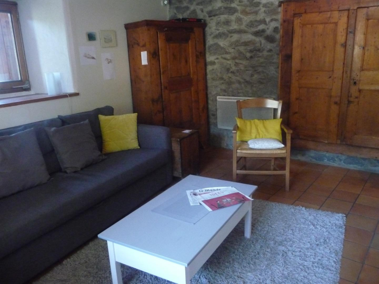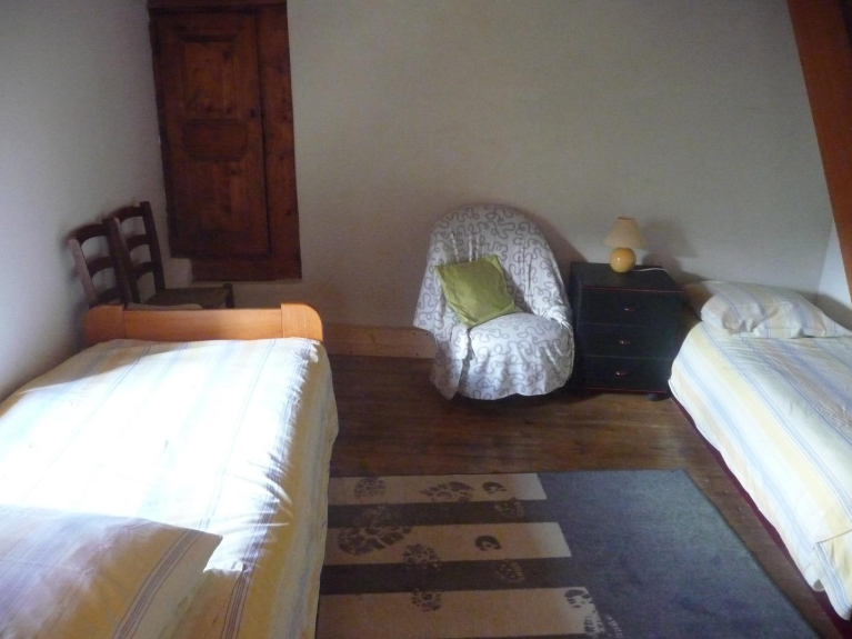 L'appartement est situé dans un ancien chalet et convient aux familles . Calme, bien ensoleillé, terrasse et balcon plein sud. 4 pièces (2 chambres communicantes à l'étage et une mezzanine );