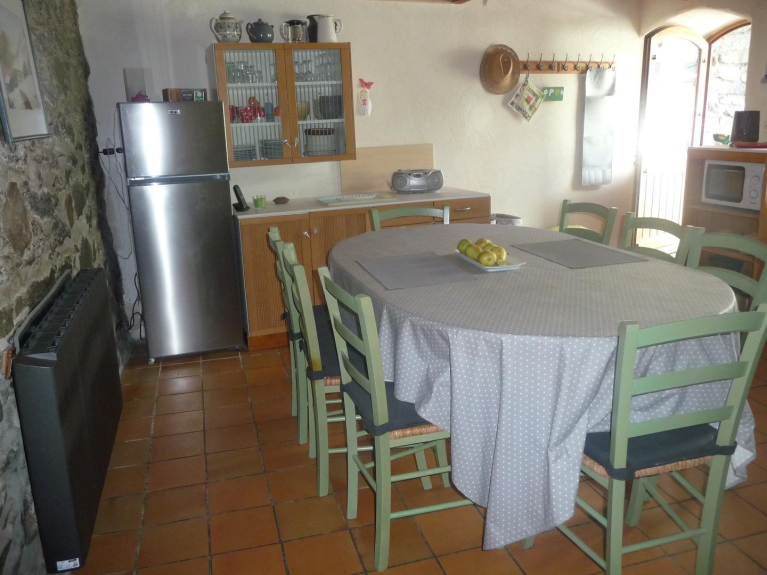 Grande cuisine familiale et salon séparé avec cheminée (bois fourni).