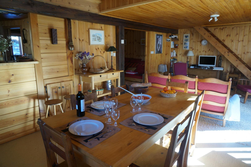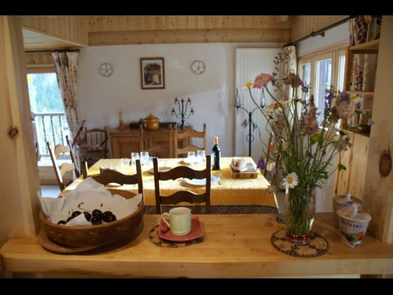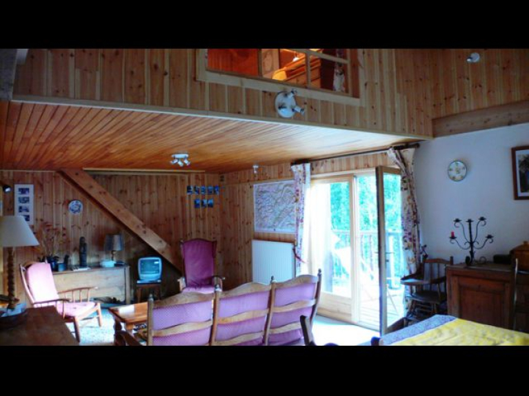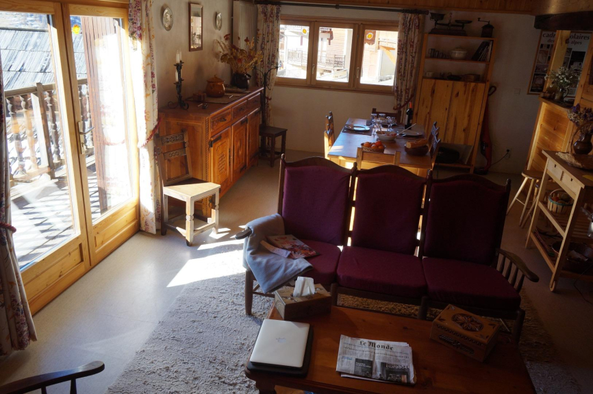 L'appartement s'ouvre sur un balcon où il est bon de se détendre dans une chaise longue, au soleil, après le ski ou la randonnée. Deux chambres, l'une pour deux personnes, l'autre pour trois et une salle de bains moderne dans un décor de bois constituent le niveau supérieur, la cuisine, le séjour de 30 m2 avec télé couleur, lecteur de DVD et téléphone et la troisième « chambre-salon » et la salle d'eau sont au niveau du jardin. Tout le confort moderne (lave-vaisselle, four multifonctions combinées, plaque de cuisson à induction, robot ménager, cafetière, machine à café, bouilloire électriques, etc...).