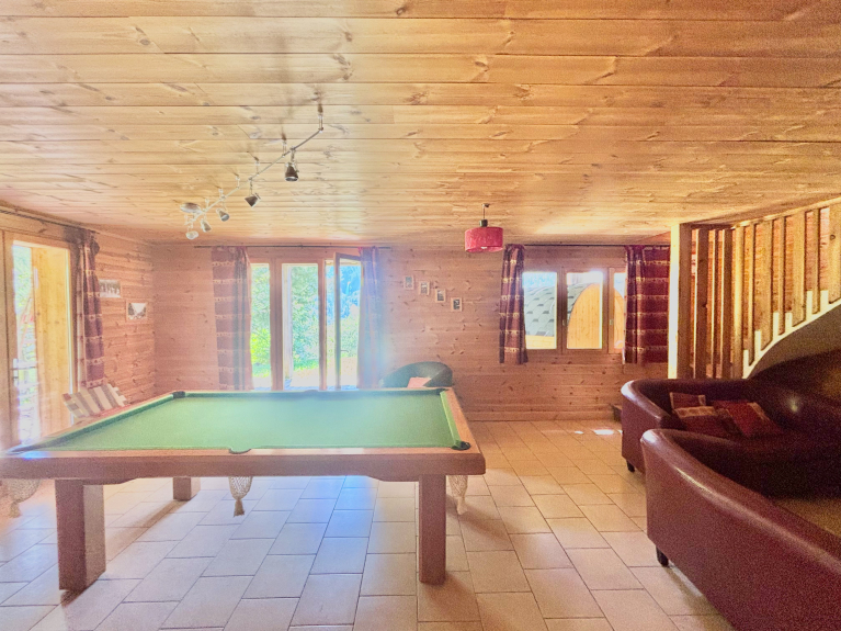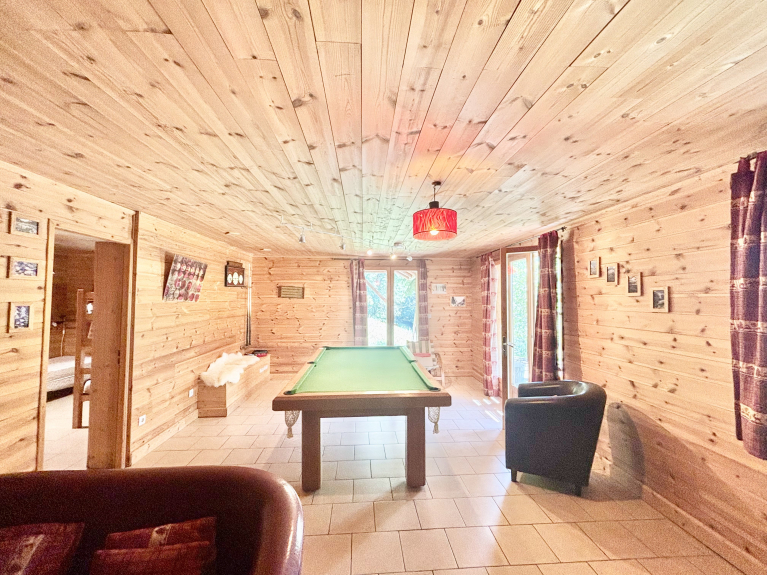 Grande pièce de vie conviviale : espace salon–billard–TV pour vos soirées.