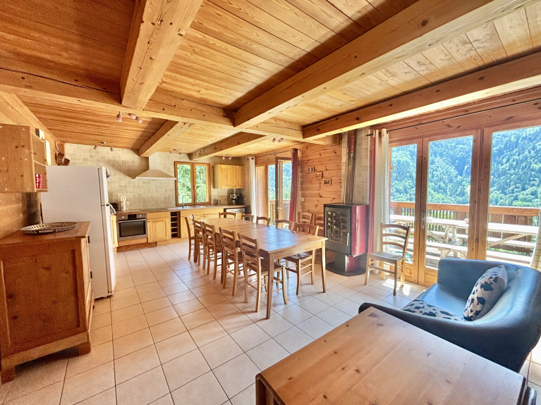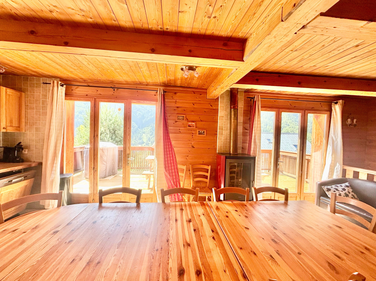 Grand chalet tout en bois, déco soignée, ambiance calme et chaleureuse à l’orée de la forêt. Capacité 15 personnes , idéal pour se retrouver en famille ou entre amis.