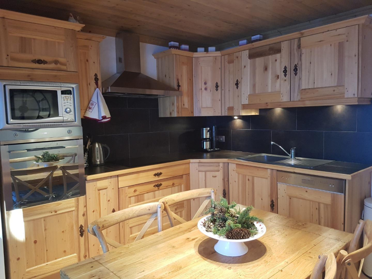Cuisine totalement équipée:Four; micro-ondes; lave vaisselle; grille pain; cafetière; réfrigérateur; appareil à raclette et fondue...
