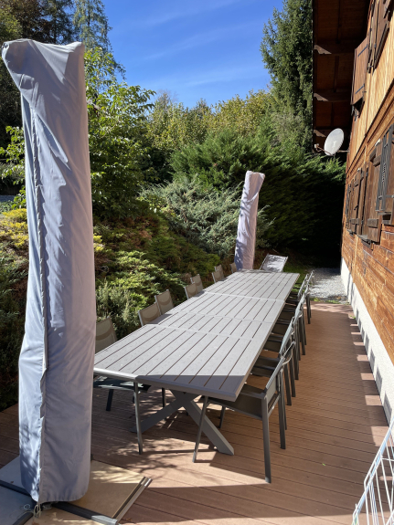 L'équipement est complet, accès internet wifi, 2 télévisions 107cm, 2 cuisines complètes avec chacune son lave-vaisselle, four traditionnel, four micro-onde, bar. Cafetière Nespresso (capsules classiques) et cafetière classique à filtres papier, services à raclette et à fondue sont à votre disposition), véritable babyfoot de café de marque Bonzini en accès libre, TV par satellite, 2 garages doubles avec portes électriques + parking privatif extérieur, sèche chaussures électrique pour 20 paires de chaussures de ski, véritable sauna finlandais, salon de jardin pour 15 personnes, barbecue Weber à charbon de 58cm de diamètre, 2 lits-parapluie (matelas d'origine symbolique, prévoir le matelas dont l'enfant a l'habitude) et 2 chaises hautes, etc... tout cet équipement est inclus, et privatif à l'usage exclusif des clients du chalet.