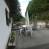 balcon avec petite table pliante et chaises de jardin, parasol, pour prendre le café ou l'apéritif ou lire au soleil,