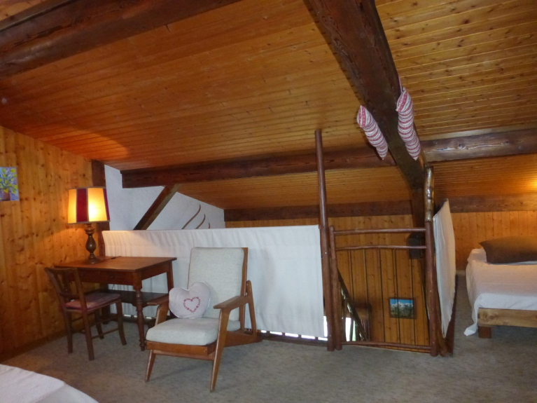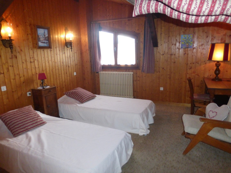 + chambre indépendante de 11m2 pour 2 personnes sur le même palier avec WC et lavabo, sur Rochebrune avec accès en rez de chaussée dans un chalet avec duplex situé à proximité de belles ballades, en pleine nature avec vue dégagée sur le Val d'Arly, Cassioz, Mont Charvin, La chaine des Aravis,