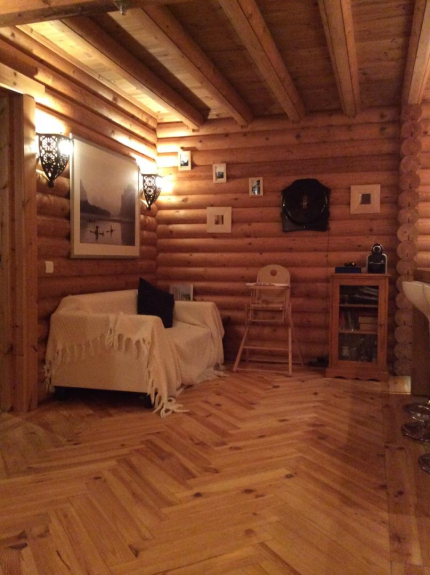 Op de eerste verdieping: Een grote leefruimte met een open keuken, bar, leeshoek, eetkamer met een grote ronde tafel voor 13 personen, een zithoek met HDTV projector, en een pelletkachel voor degenen die van de warmte van het vuur houden.