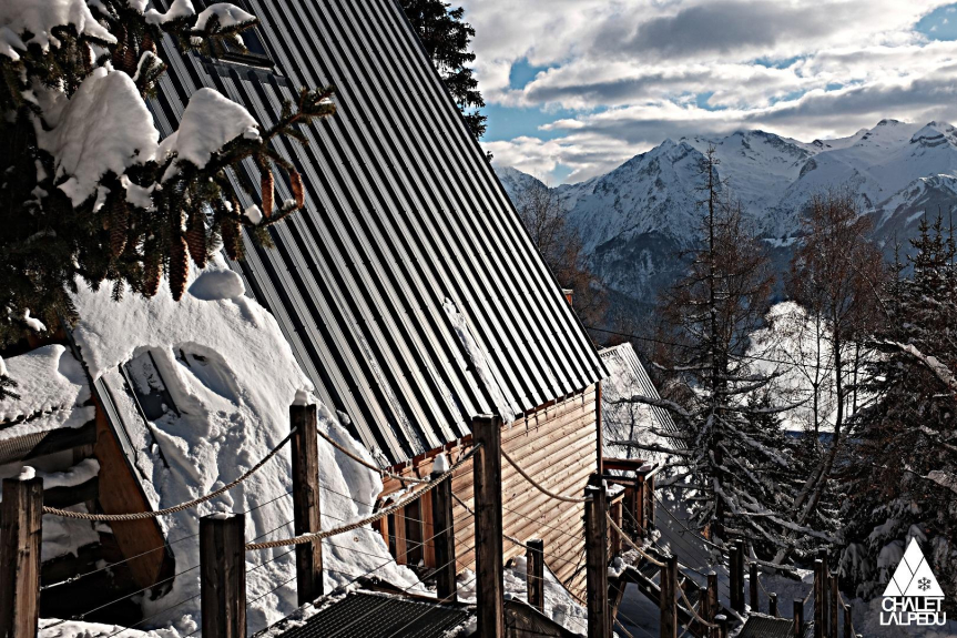 Genesteld tussen de dennenbomen, ligt Chalet Lalpedu op een hoogte van 1800 m aan de zuidkant van Alpe d'Huez. Het is een van de delta-chalets in de privéstraat van Les Sagnes. De deltachalets, die in de jaren 1950 werden gebouwd door de architecten Robert Demartini en Pierre Sicard, profiteren van het klimaat van een zeer zonnige locatie en een adembenemend uitzicht op de bergen van de Oisans en de Écrins. De atypische architectuur van de delta-chalets, met hun steile daken en puntgevels, verleent de plaats een unieke charme. Ze zijn gelegen in de wijk Vieil Alpe, het historische centrum van Alpe d'Huez. U kunt het centrum van Vieil Alpe te voet (5/10mn) of met de auto (3mn) bereiken. Ter plaatse vindt u alle benodigde winkels; restaurants, bakker, slager, kaaswinkel, minimarkt, toeristenbureau, skipasbureau, skiwinkel, enz. Het vertrekpunt voor de ski's bevindt zich aan het einde van de straat, vanaf daar zijn er twee oplossingen, of u neemt de skipiste die naar Huez gaat of u neemt de gratis pendeldienst die u naar de rotonde van de pistes brengt waar u het trefpunt van de skischolen zult vinden. De terugweg op ski's kan worden afgelegd via het voetgangerspad of via de piste die naar het dorp Huez leidt.