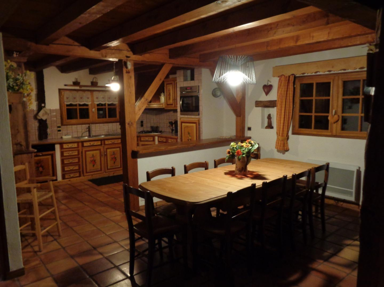Ingedeeld 3 * In een rustig gehucht, ski vertrek op 200 m en terug op ski's ! Adembenemend uitzicht op het Aravis gebergte en de Mont Charvin! In een traditionele boerderij, doordrenkt van geschiedenis. Zeer ruime en vriendelijke leefruimte.