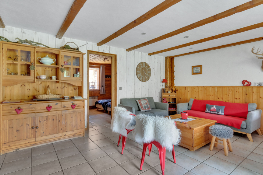 Het appartement bevindt zich op het tuinniveau van een typisch Savoyard chalet aan de voet van de hellingen van het Montchavin resort.