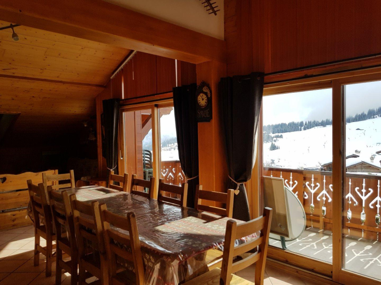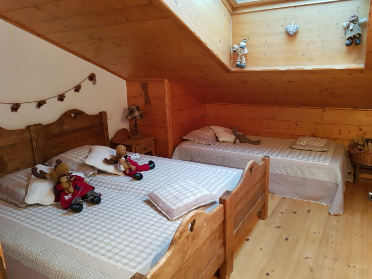 Appartement op de 1e verdieping van een klein chalet met 3 appartementen. Groot balkon op het zuiden, vrij uitzicht op Bisanne en Pierra Menta. Aan de rand van de piste, naast de skischool en het sportcentrum. Zorgvuldig ingericht in bergstijl. 5 slaapkamers, 2 badkamers en 2 aparte toiletten. Ideaal voor 11 personen, 2 skilockers, 2 overdekte parkeerplaatsen en 1 privéparkeerplaats boven het hoofd.