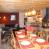 Deze woonkamer bestaat uit een zeer grote tafel, een open haard met gesloten haard, 1 zeer grote zithoek