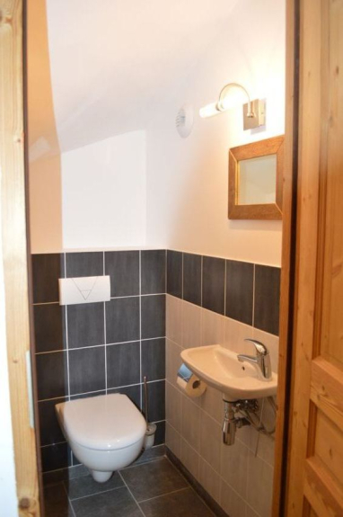 Een doucheruimte en sanitaire voorzieningen voor slaapkamers 2 en 3