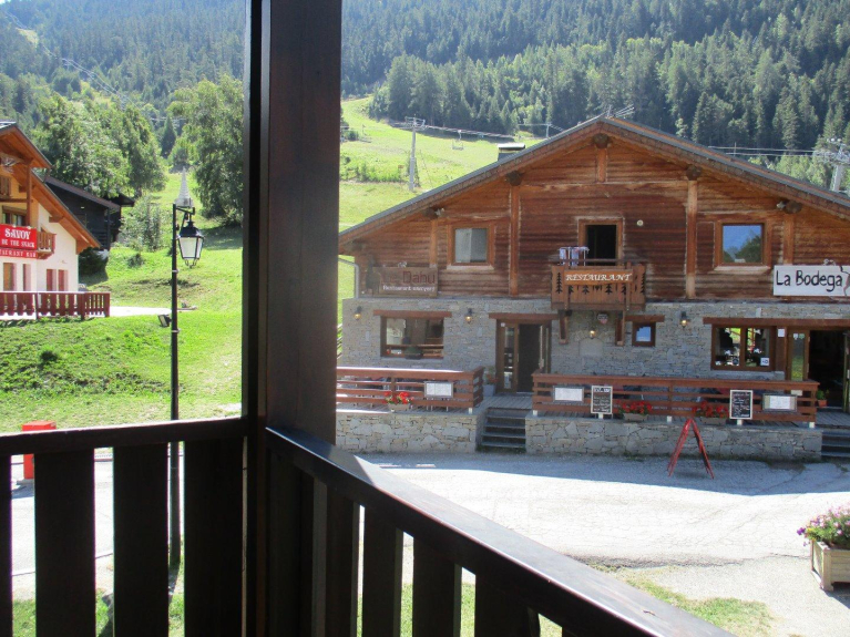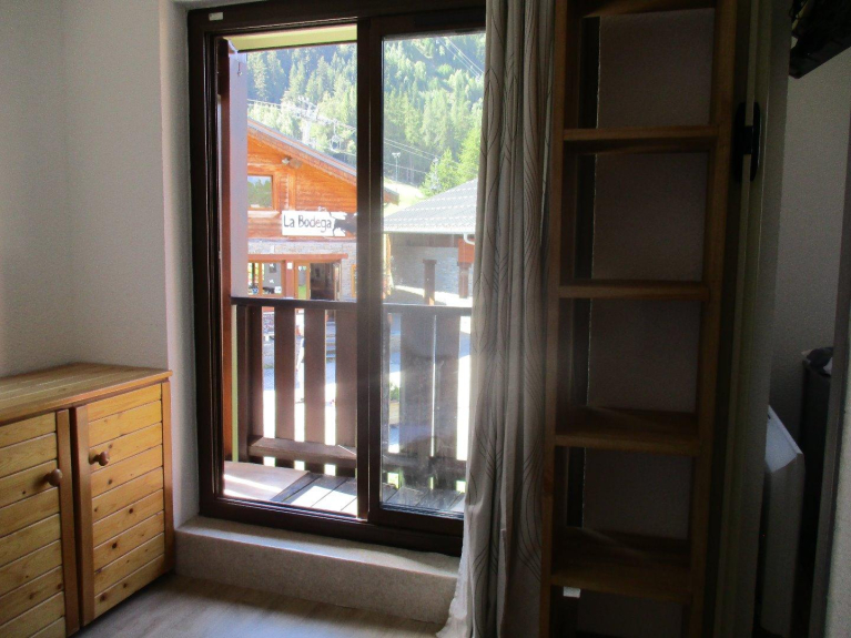 Appartement van 25m² op de 1e verdieping van een gebouw aan de voet van de pistes met een balkon met uitzicht op de berg.