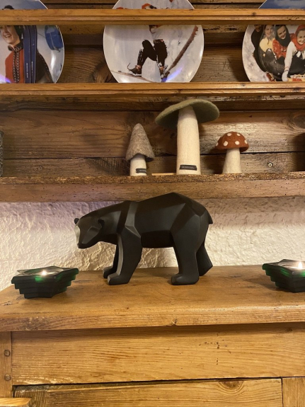 Het chalet heeft veel charme: oude meubels en typische regionale voorwerpen, balkenplafond, zeebies en houten vloeren.