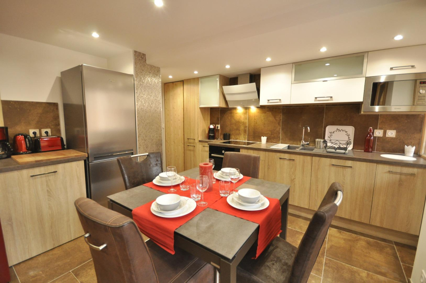 Volledig ingerichte keuken: inductie kookplaat, afzuigkap, koelkast met vriesvak, vaatwasser, pyrolyse oven en magnetron, wasmachine en droger, Dolce Gusto koffiezetapparaat, broodrooster, raclette machine...