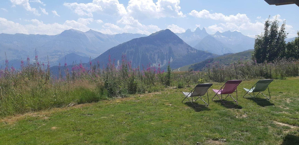 Gelijkvloers appartement in een vrijstaand chalet (bouwjaar 2018), rustige woonwijk met panoramisch uitzicht op de bergen (tegenover de Aiguilles d'Arves).