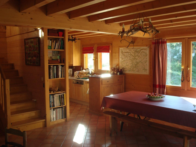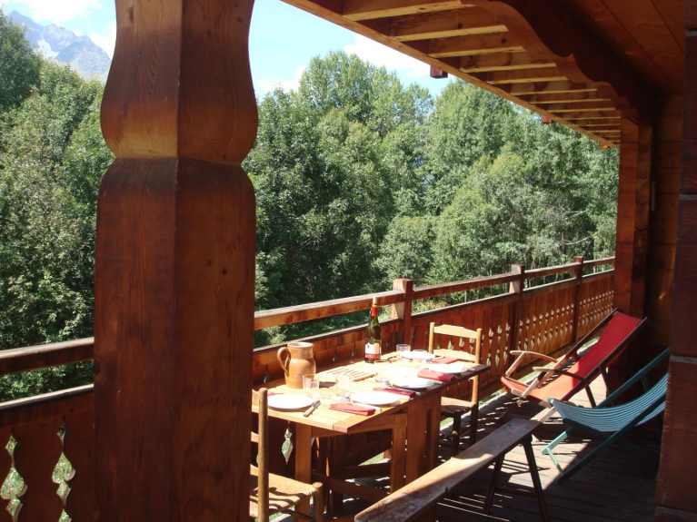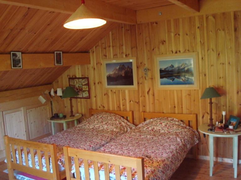 Chalet gebouwd in het begin van de jaren 2000, vol charme, op het zuiden en met uitzicht op de gletsjers, het biedt alle comfort (170 m2, 5 slaapkamers, 2 badkamers + 1 wastafel, 2 WC's):