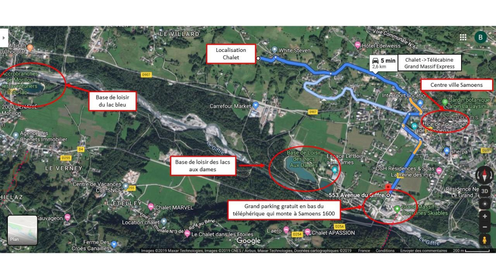 Het chalet zelf geniet van een bevoorrechte ligging. Ideaal gelegen aan de zuidkant, boven het dorp, kunt u genieten van maximale zonneschijn en een panoramisch uitzicht over de hele vallei van de Giffre.