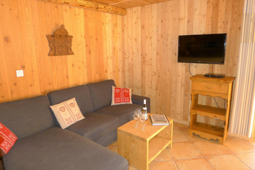 Het is een zeer comfortabel, gelijkvloers, op het zuiden gelegen en zeer licht appartement, in een typisch en warm stenen chalet. Terug naar het chalet op ski's gegarandeerd!
