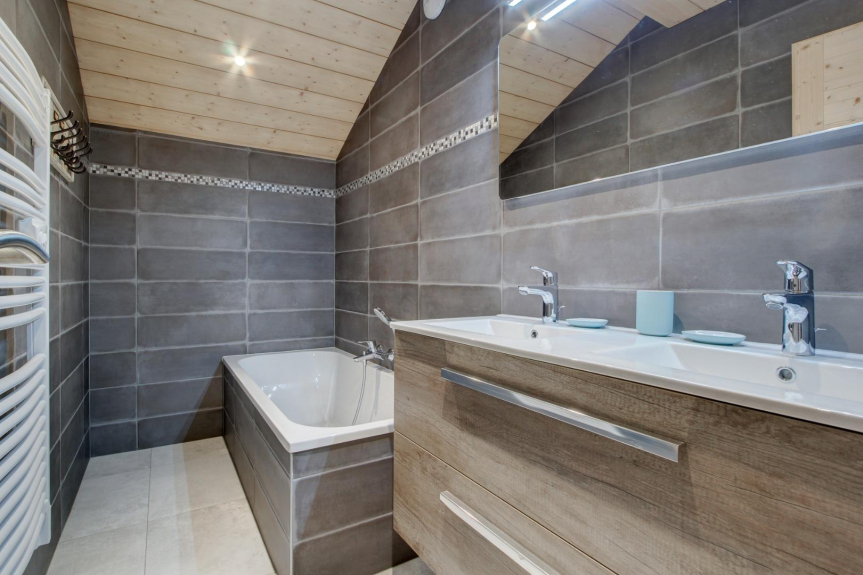 - badkamer met ligbad en dubbele wastafel