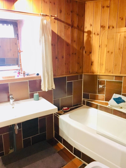 -Begane grond: Volledig ingerichte keuken-eetkamer met uitzicht op de tuin, woonkamer, grote skiruimte, inertiekachel in aanvulling op elektrische verwarming, wasruimte met wasmachine, droger, strijkijzer en strijkplank, badkamer, WC.