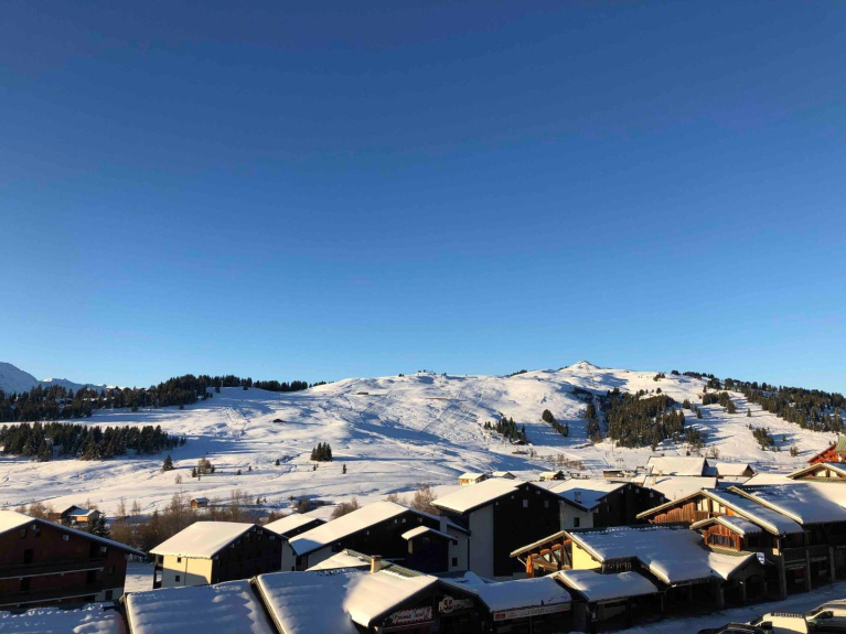 - Balkon op het zuiden met uitzicht op de hellingen van de Mont Bisanne en de avenue des JO (in het hart van het resort)