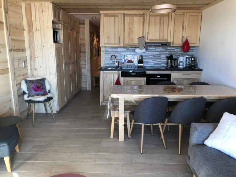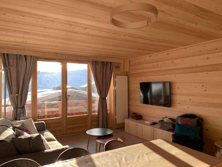 Zeer mooi en comfortabel appartement, geheel gerenoveerd door lokale ambachtslieden, met zorg ingericht en gelegen in het hart van het resort (Chalet Breithorn, aan de avenue des JO):