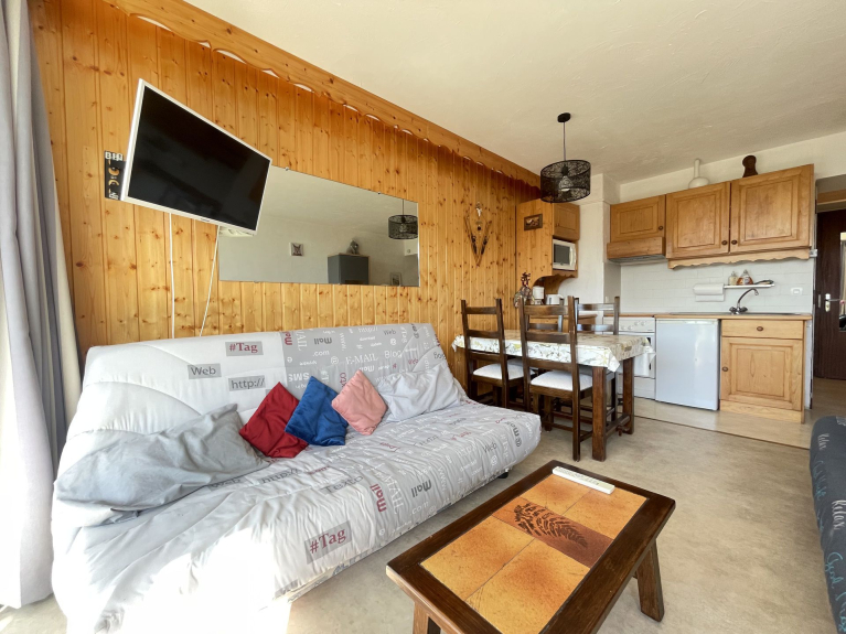 Studio op de zevende verdieping van de residentie Alpages, met een oppervlakte van 24 m, zijn balkon op het zuiden biedt een prachtig uitzicht op het dorp, de Mont Charvin en de vallei.