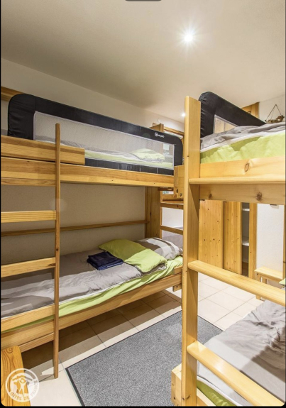 Twee slaapkamers met tweepersoonsbed; Een kinderslaapkamer met 4 stapelbedden, 1 badkamer met bad, 1 badkamer met douche, 1 WC.