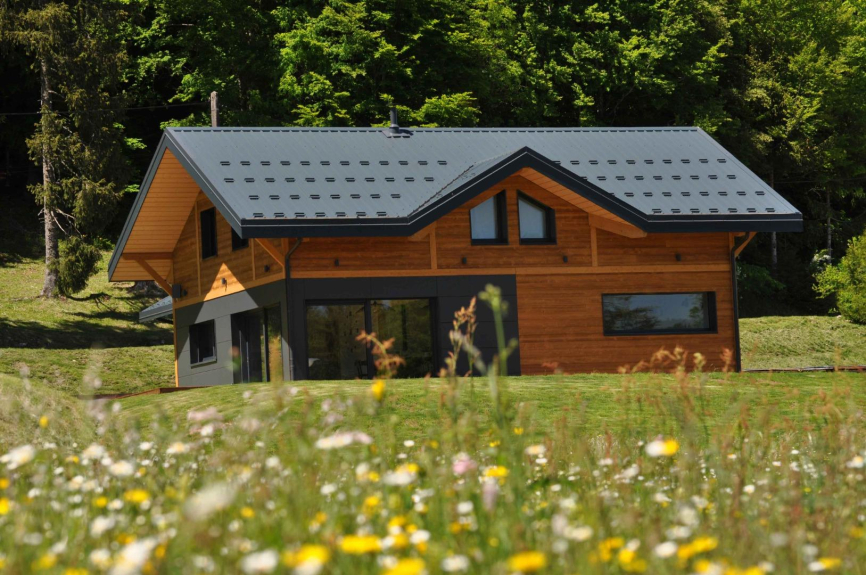 Mooi nieuw eigentijds chalet ingedeeld als 4 gemeubileerde toeristische accommodatie, gelegen op 1 km van het dorp Prémanon in de badplaats Les Rousses in de Jura, op een steenworp afstand van Zwitserland.