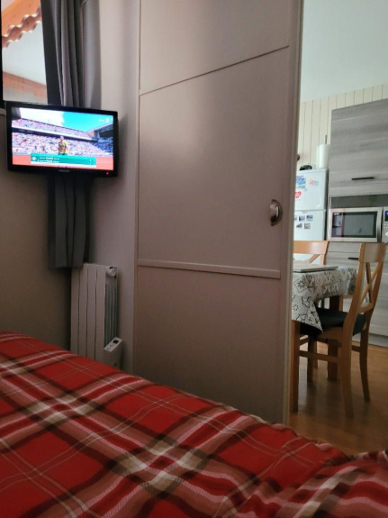 * een gesloten slaapkamer voor 2 personen : met 1 bed van 140cm, flatscreen televisie, wekkerradio