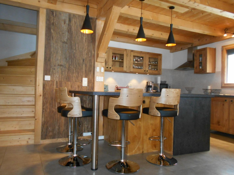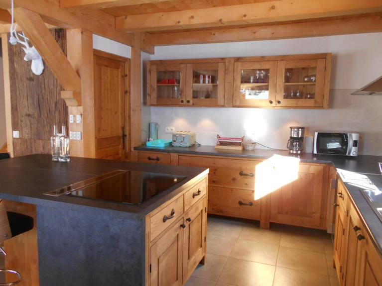 De keuken is uitgerust met een afwasmachine, oven, magnetron, koelkast, vriezer, wijnkelder, raclette- en fondue-apparaten.