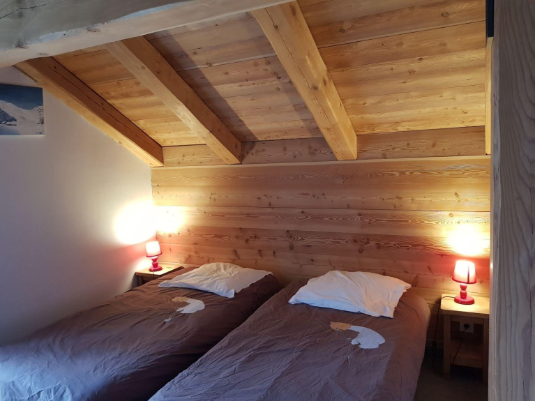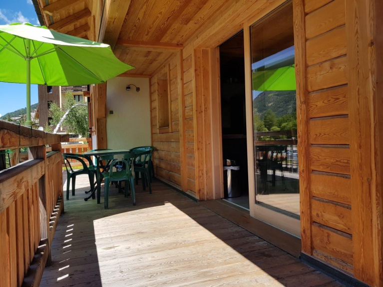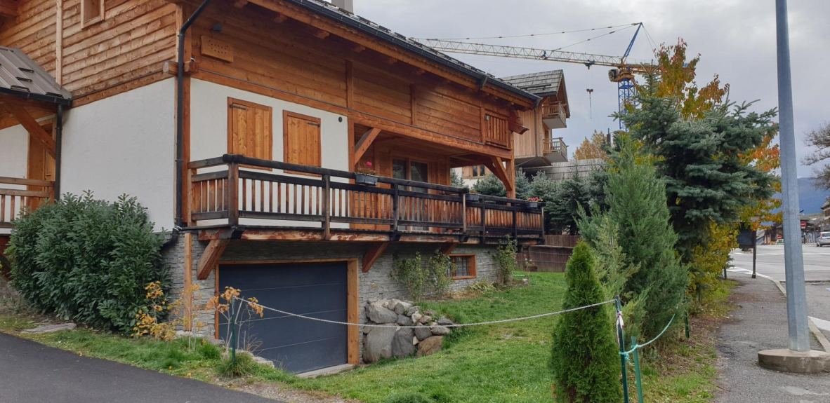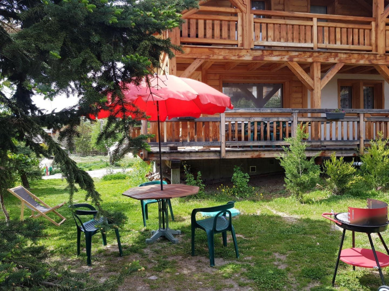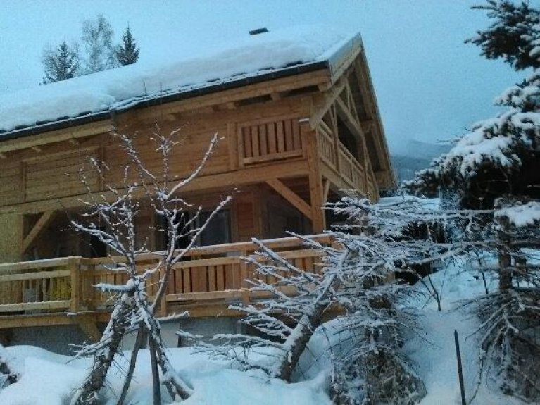Chalet gebouwd in lokaal larikshout met 5 slaapkamers, 1 badkamer en 2 douches, 3 toiletten, sauna, ski- of fietsruimte. in het centrum van het skioord serre chevalier chantemerle. tuin met tafel, stoelen, parasol, barbecue.