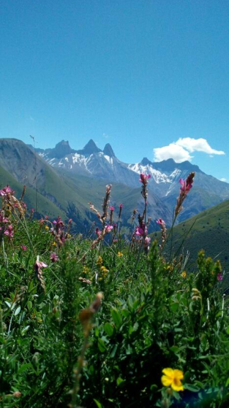 Schitterend uitzicht op de Aiguilles d'Arves, op 9 km van de Col de la Croix de Fer