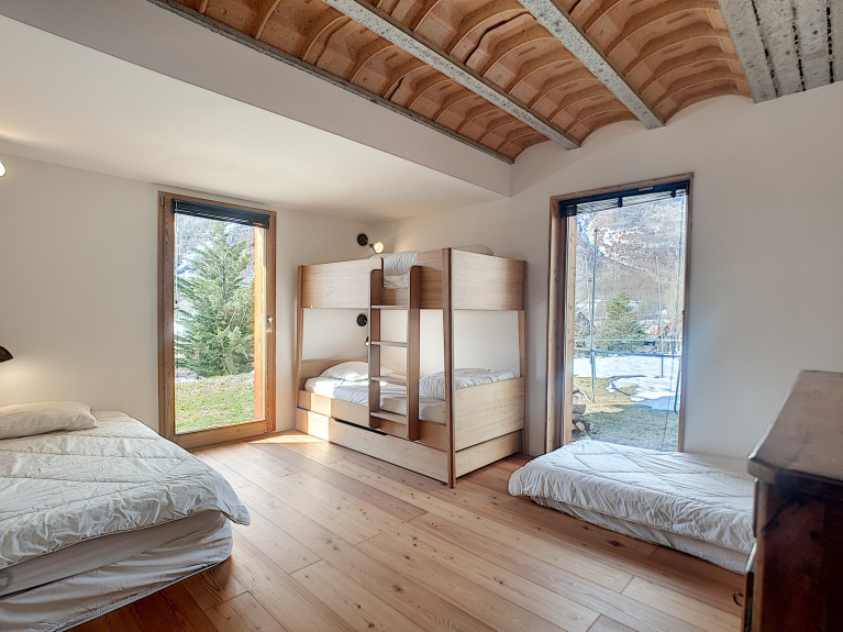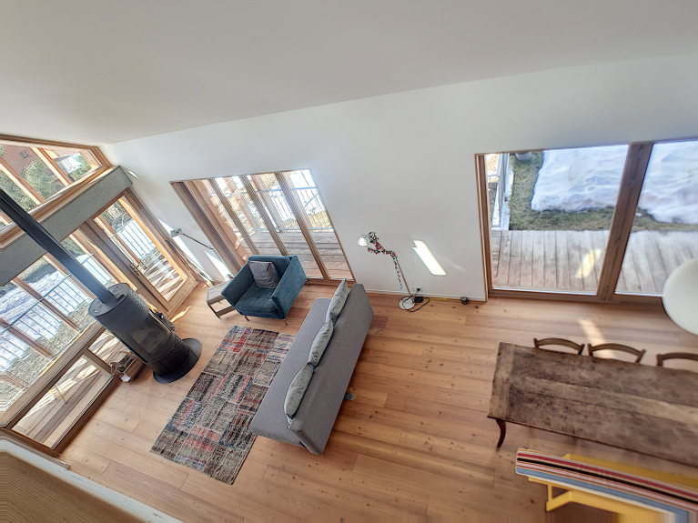 CHAL LE GYPAETE - Prachtig chalet van een architect met een grote tuin van 1250 m², bestaande uit 3 slaapkamers, grote woonkamer met houtkachel, ingerichte keuken, 2 badkamers en 2 toiletten.
