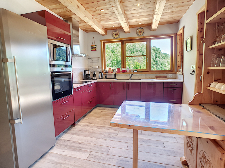 Uitrusting : WIFI, flatscreen TV, koelkast, diepvriezer, open haard, wasmachine, wasdroger, vaatwasser, oven, inductiekookplaat, broodrooster, 1 koffiezetapparaat met filter, 1 Nespresso-koffiezetapparaat, 1 waterkoker, 1 snelkookpan, 1 staafmixer, 1 elektrische mixer, 1 haardroger, 2 raclettezetapparaten, 1 fonduezetapparaat, magnetron, terrasmeubilair, ligstoelen, buitenbarbecue.
