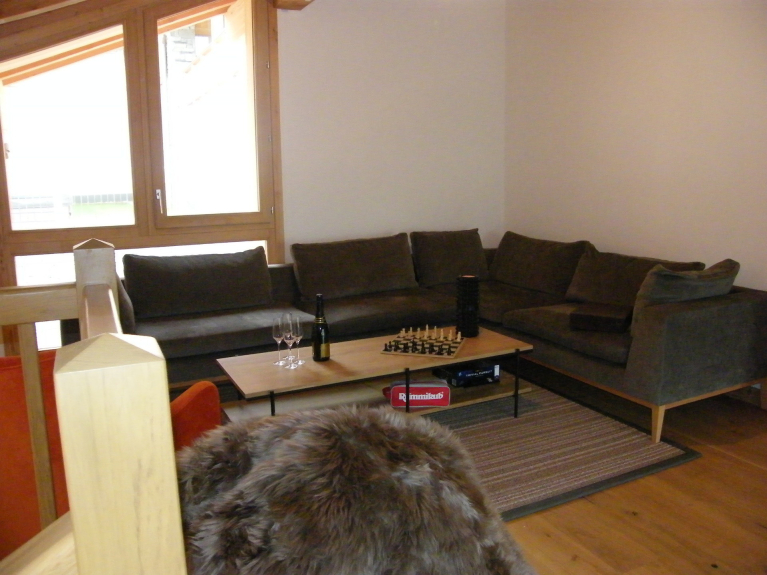 Gezellige zitkamer met TV op de mezzanine. Alleen Engelse kanalen.