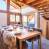 Eethoek met houtkachel. Het komt uit op het balkon met jacuzzi.