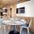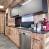 Open keuken uitgerust met 4 inductiekookplaten, koelkast, oven, magnetron, afwasmachine.